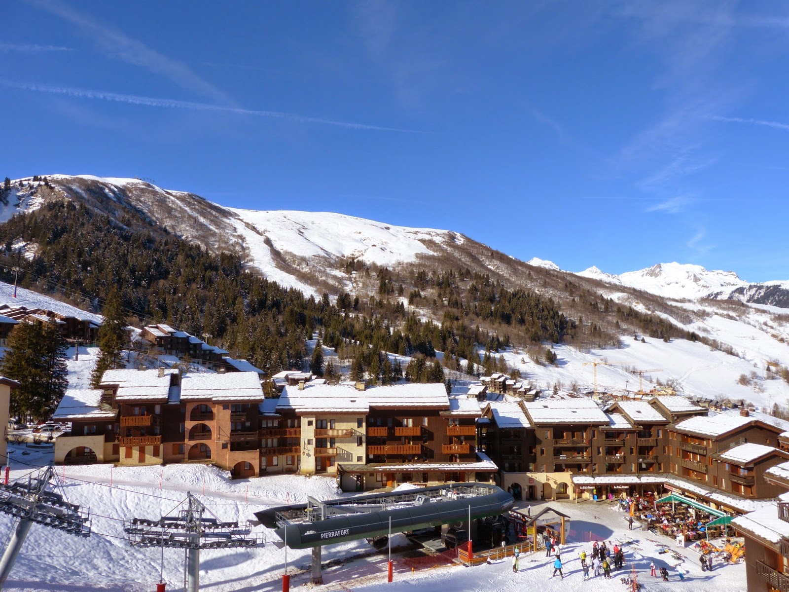 Il est situé juste à côté de la télécabine Pierrafort donnant accès à tout le domaine de Valmorel, d'un loueur de matériel, d'une supérette, d'un restaurant, de la station intermédiaire du télébourg (mini-téléphérique desservant le centre bourg et le club Piou-Piou en bas, et le rassemblement de l' E.S.F. en haut). Il permet le DEPART et L'ARRIVEE skis aux pieds depuis le casier à skis situé au rez de chaussée.