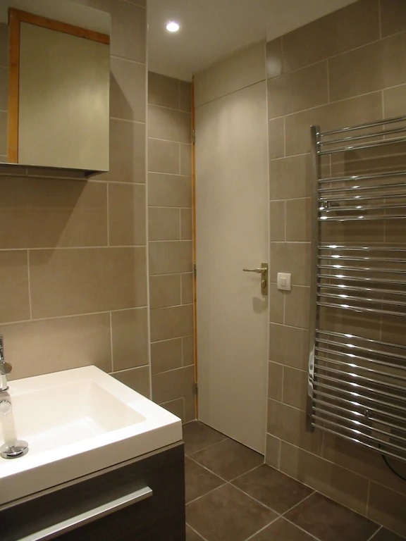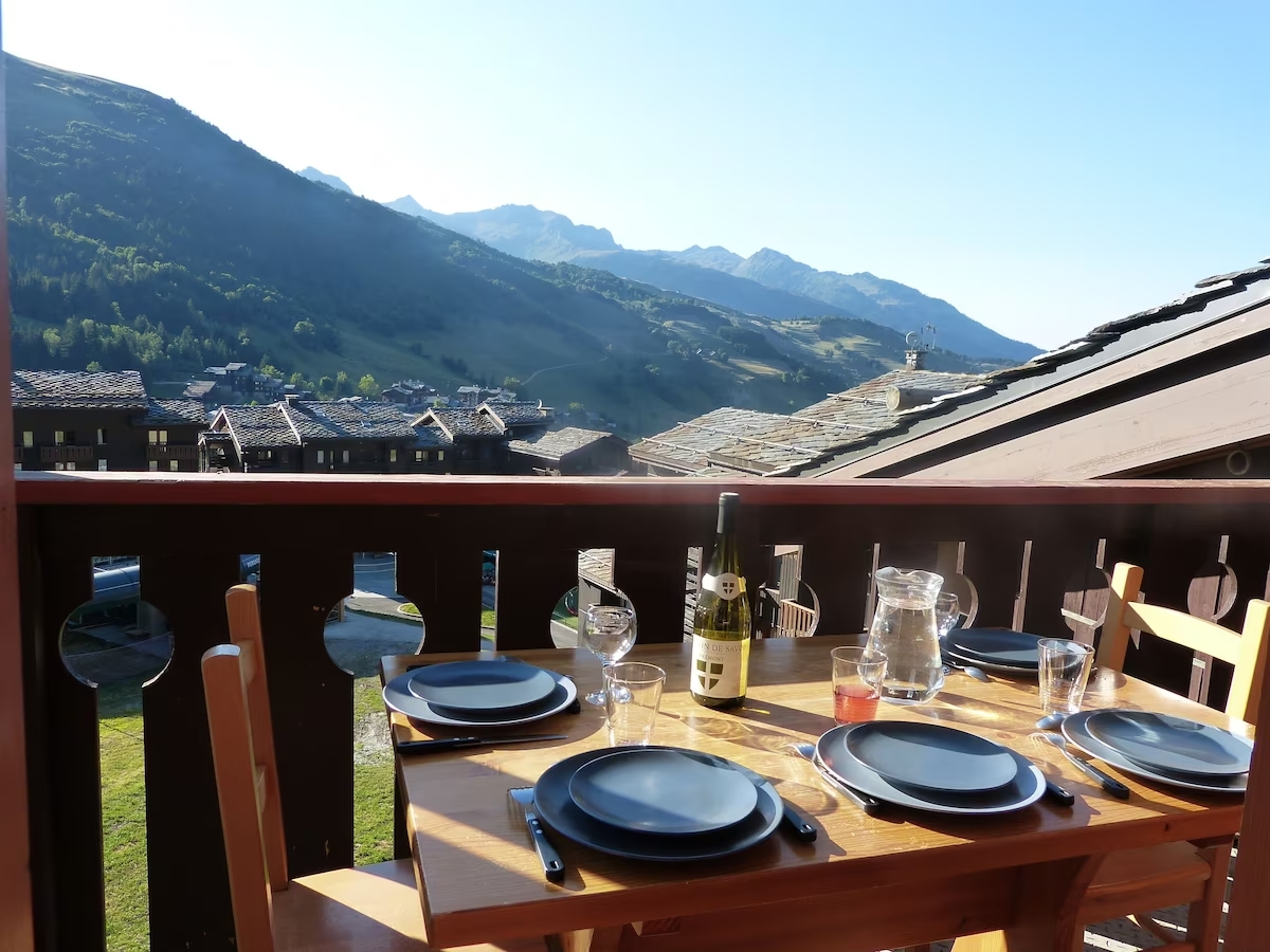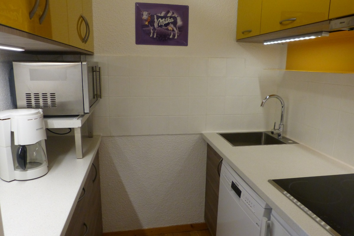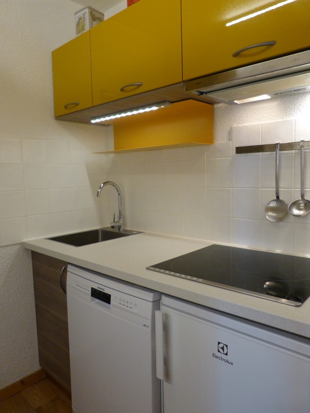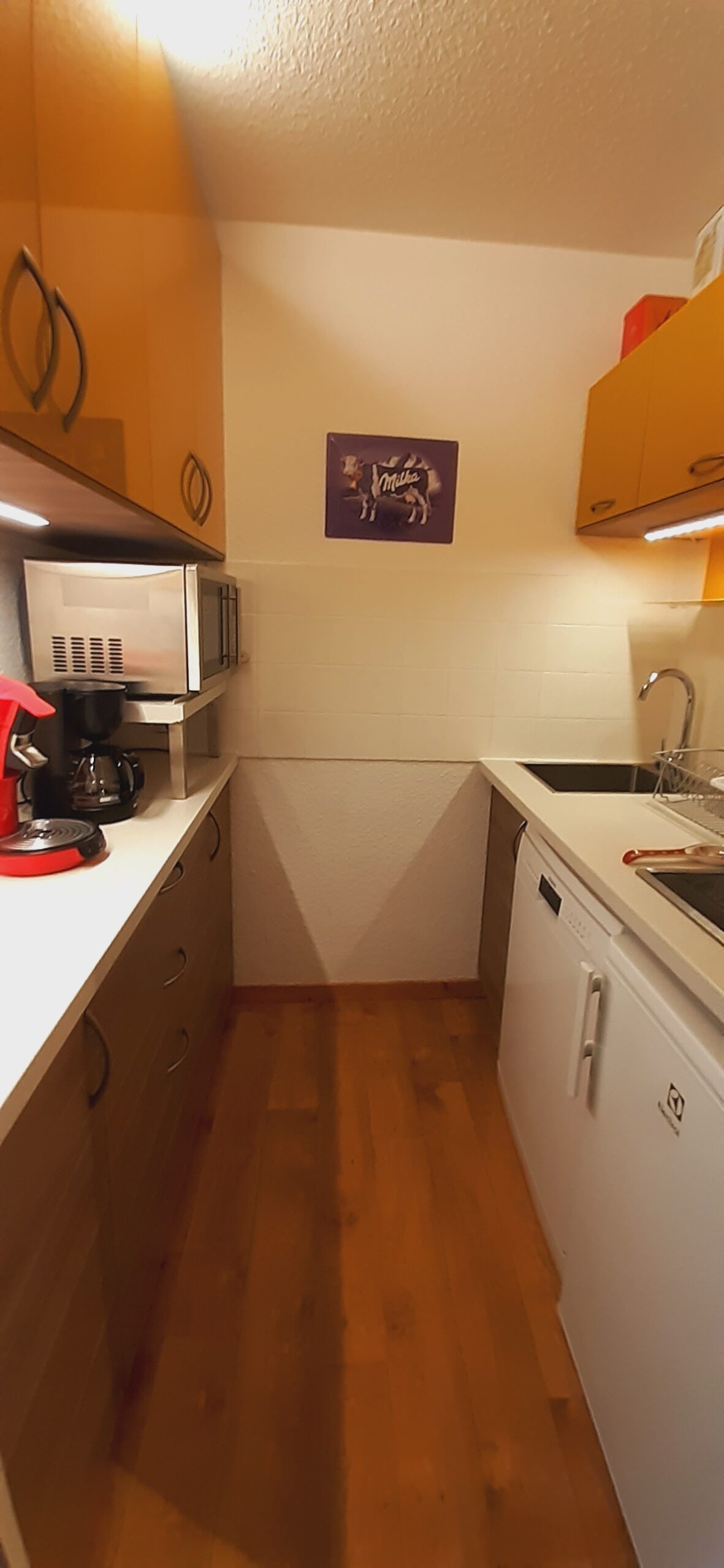 chambre indépendante avec 3 lits, salle de bains avec douche, WC séparés, penderies, balcon avec vue dégagé sur la montagne. Equipé d'un lave-vaisselle, un four combiné/micro-ondes, une machine à laver sèchante, vaisselle, un téléviseur écran plat et lecteur DVD.